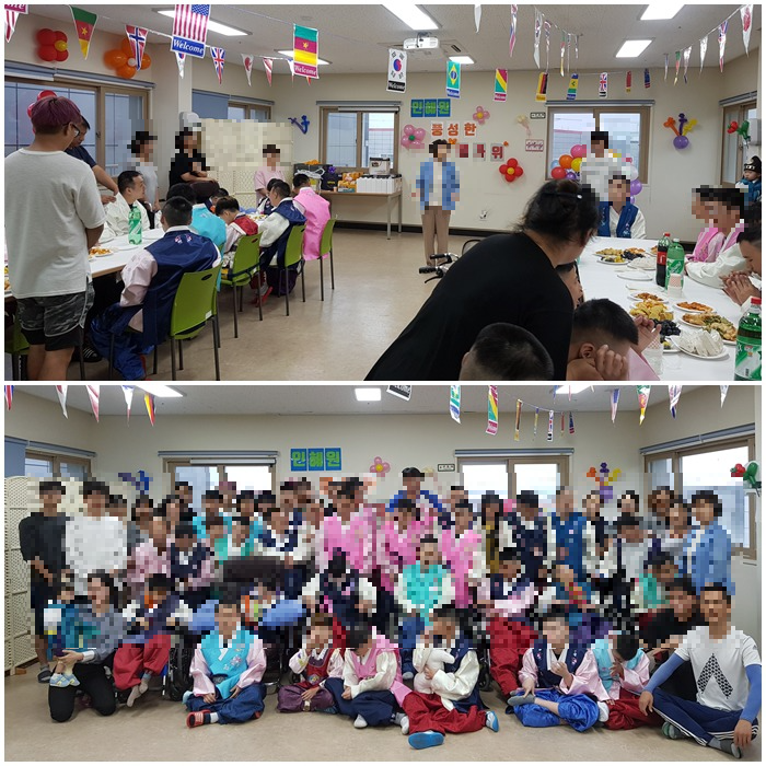 올해도 어김없이 2018년도 추석맞이 행사를 진행하였습니다. 추석 행사를 마치고 나면 몇몇 입주자는 원가정에 방문을 하게 되고 남아 있는 입주자는 담당 선생님과 함께 지내게 되는데 원가정의 따뜻함 못지 않게 풍성한 한가위가 될 수 있도록 오늘 하루 즐겁고 기쁘게 보내고자 합니다.