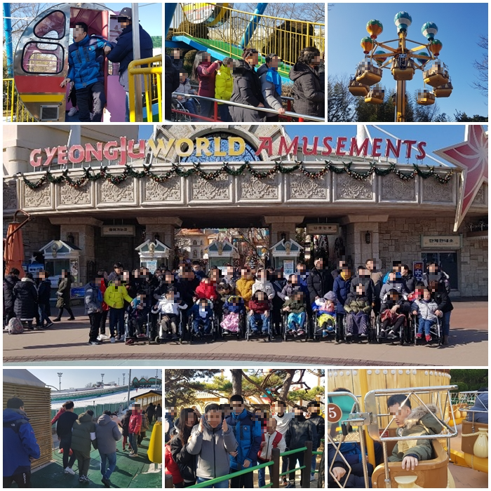 2020년 1월 15일 수요일에 겨울여행 테마로 경주월드에 다녀왔습니다. 겨울하면 생각나는게 눈인데, 부산지역은 겨울에 눈을 보기가 좀 처럼 힘들어서 올 겨울 추억을 남기기 위해 입주자와 직원 모두가 눈썰매를 타러 가기로 하였습니다. 이번 여행은 서울공동모금회를 통해 지정기탁된 사업의 일환으로 실시하였는데 후원해주신 덕분에 잘 다녀왔습니다.