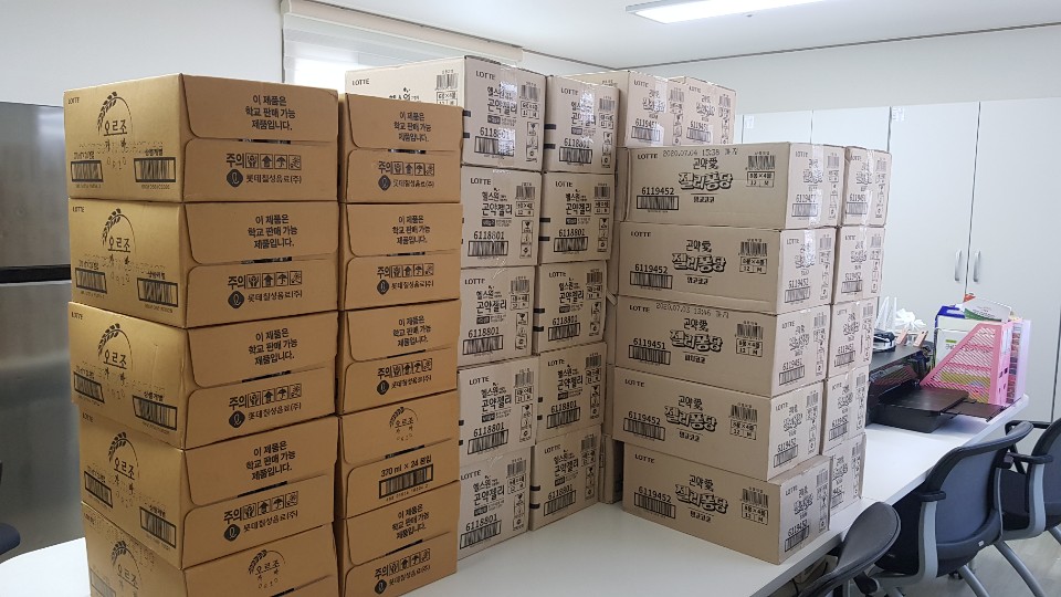 강서구 둥지 푸드마켓에서 젤리셔스 3박스, 젤리퐁당 22박스, 곤약젤리 10박스, 오르조 가바 음료 10 박스를 후원해주셨습니다. 감사합니다~