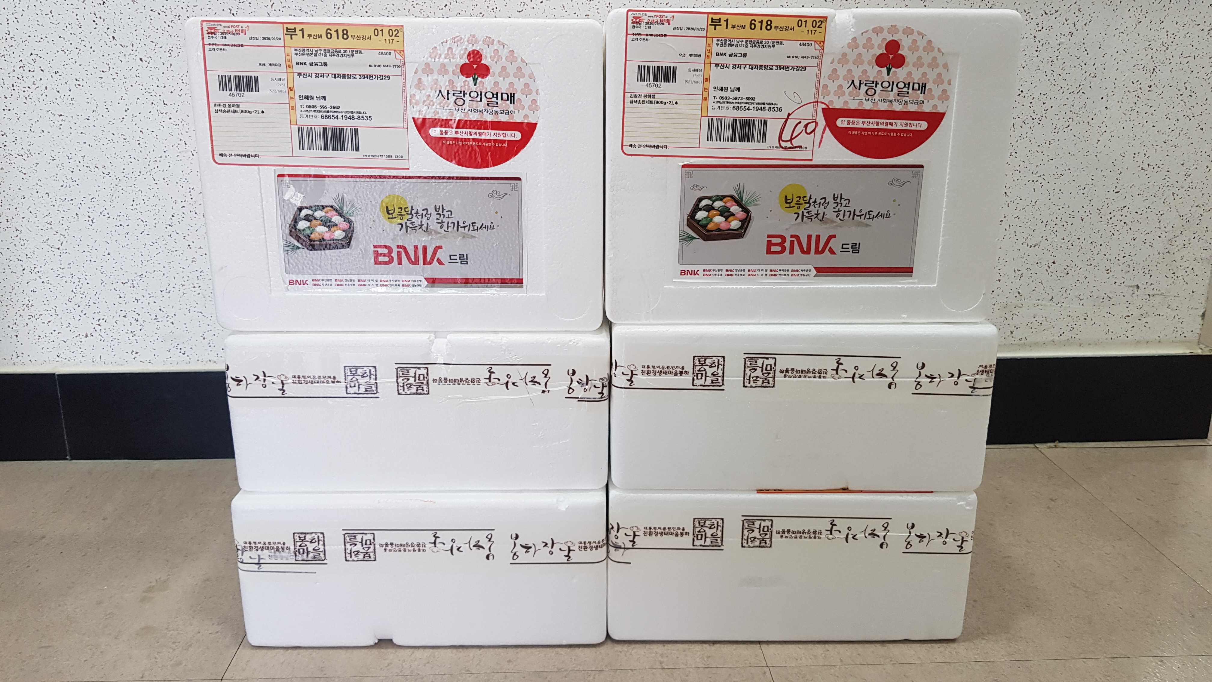 BNK금융지주에서 부산사회복지공동모금회를 통해 추석맞이 송편을 후원해주셨습니다.