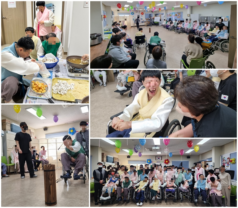 2024년 2월 7일(수) 인혜원에서는 입주자분들과 종사자들이 한자리에 모여 설 명절 맞이 행사를 진행하였습니다. 아침부터 입주자분들은 한복을 입고 명절 분위기를 내보았고 오전에는 명절 음식 만들기, 오후에는 민속놀이(투호던지기와 딱지치기)를 해보았는데 간단한 활동이지만 모두가 함께 모여 활동을 한다는게 즐거웠던 시간이었습니다. ^^