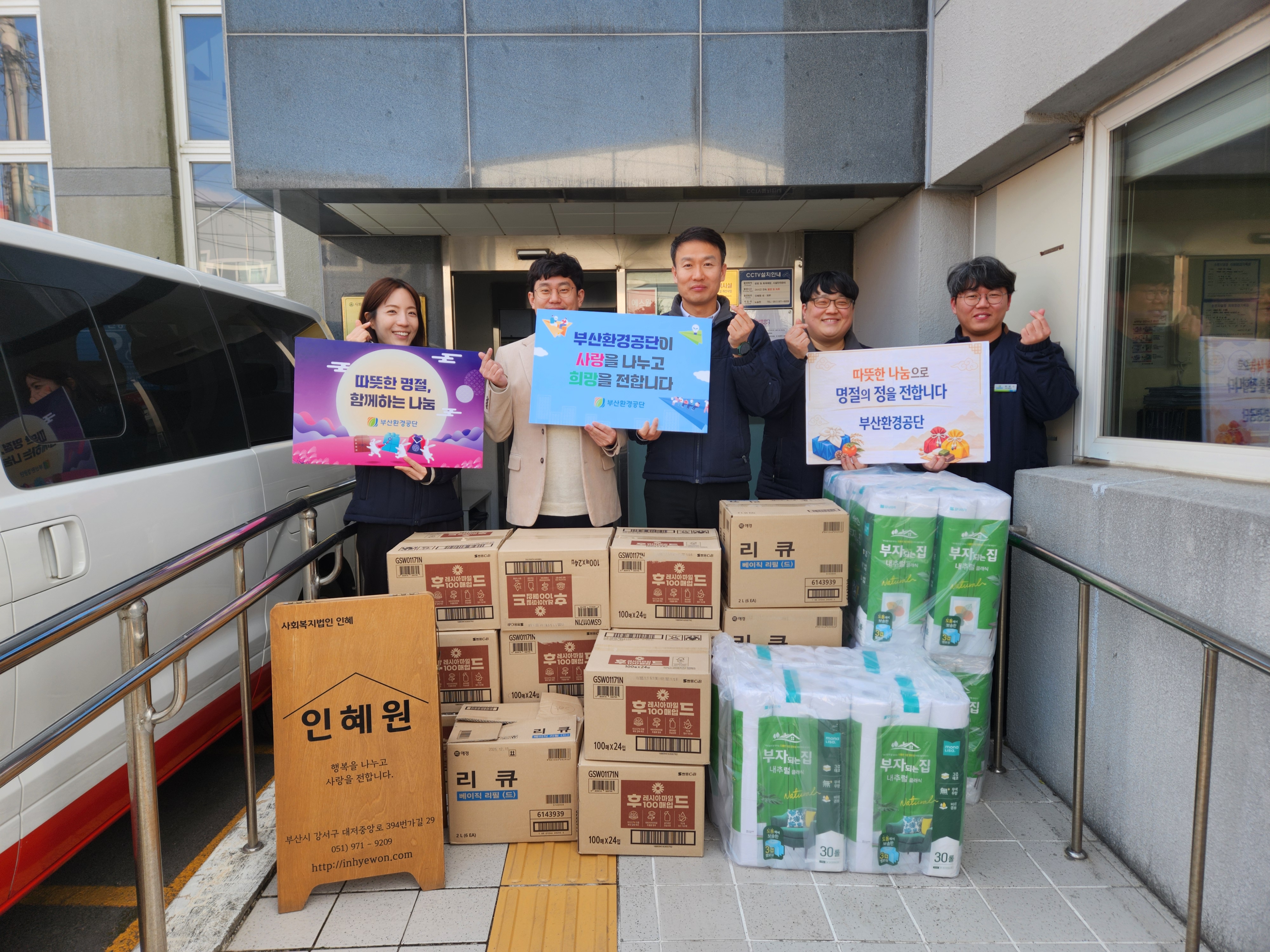 2026년 2월 11일(수) 부산환경공단에서 설 명절을 맞아 후원품을 전달해주시기 위해 기관에 방문을 해주셨습니다.