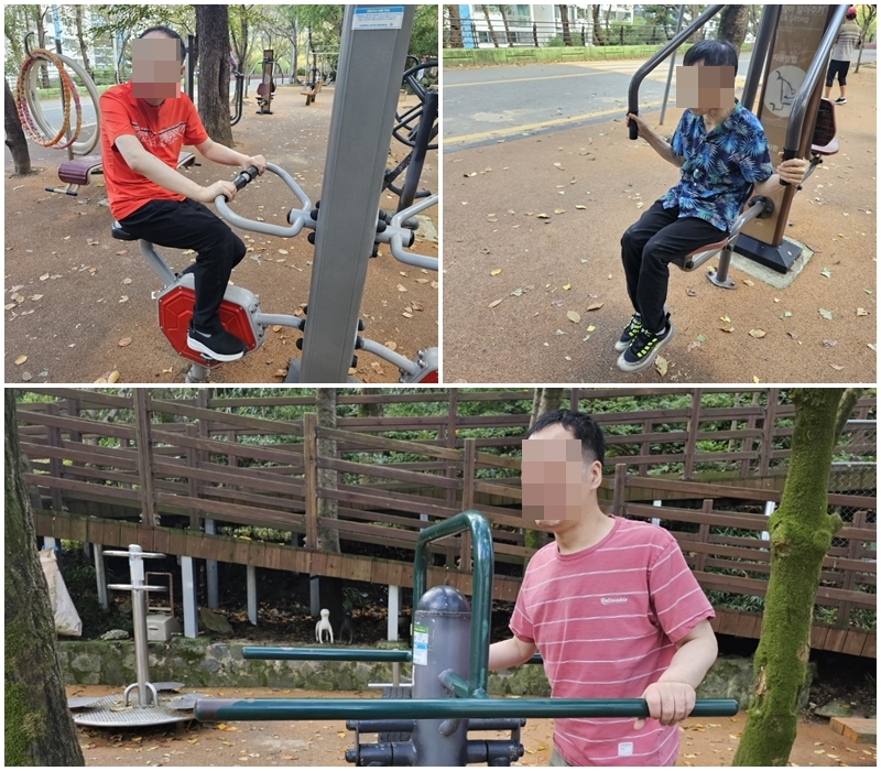 숲속놀이 프로그램의 일환으로 숲에서 할 수 있는 활동을 찾아 떠나는 프로그램인데 이번에는 금정산에 위치한 가람낙조길에 다녀왔습니다. 입주자분들은 산행을 하기에는 다소 무리가 있어서 등산객들이 이용할 수 있는 운동기구를 저마다 체험해보는 시간을 가졌습니다.